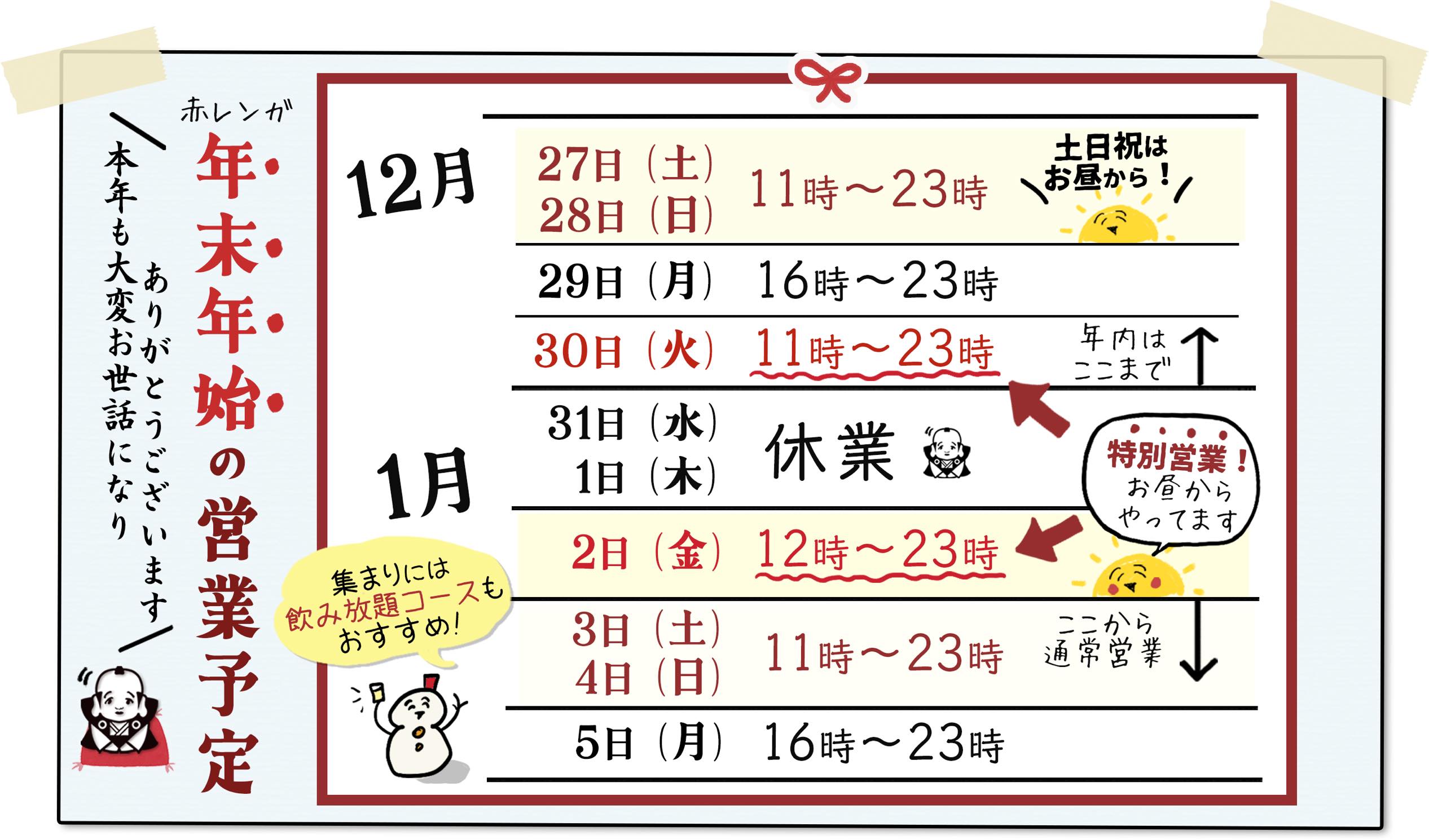 早いものでもうすぐ年末年始!小手指赤レンガキッチンでは、