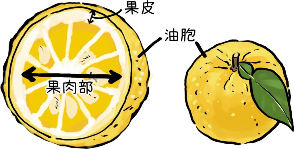 ※油胞は柚子の皮の中の「ぶつぶつした部分」で、特に香りが出る部分